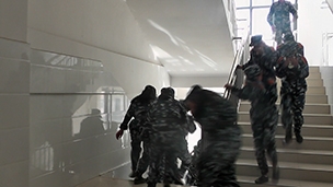 在接到发生火情和指挥中心的通知后,各位老师立即到达指定岗位,引导宿舍内学生快速疏散,学生们弯着腰,用毛巾捂住口鼻,沿着指定路线快速疏散,有序撤离到南区实训楼前操场,耗时4分30秒。随后各班清点人数,并层层向上汇报,学生全部安全疏散完毕。