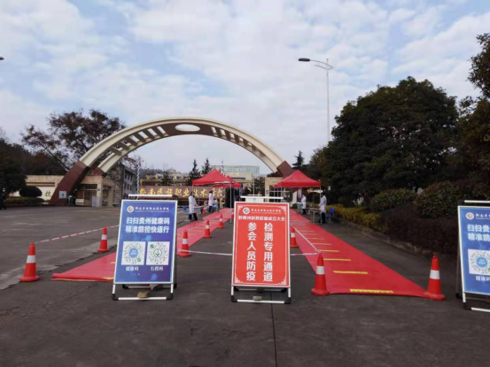 由黔南州12个县市职业学校、相关部门联合组成的黔南州职教联盟,成立大会于1月28日在学院召开,大会期间,为贯彻落实省、州关于按照“外防输入、内防反弹”和“对校园管控要严于对社会管控”的疫情防控要求,确保大会安全、有序召开,学院进一步强化了疫情防控措施:一是大会前制定了防控方案;二是设置防控检测参会人员专用通道,车辆通道与行人通道分离;三是必须扫行程码且显绿色;四是必须检测体温;五是更换新口罩;六是会场必须实行隔位座;七是出入会场必须相距1米。