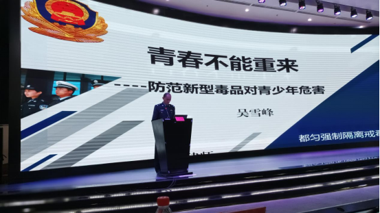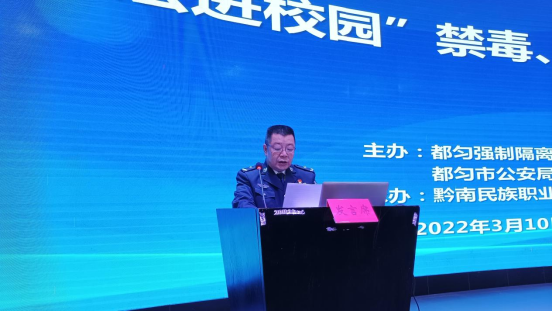 都匀强制隔离戒毒所雷所长以“青春不能重来”为题、都匀市公安局绿荫湖派出所干警谢义猛以“防范电信诈骗”为题分别为到场的师生开展了精彩的宣讲,现场气氛活跃,师生掌声不断。