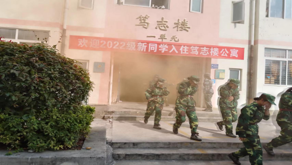 五是组织高职新生开展了一场应急疏散逃生演练。