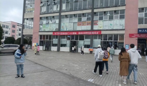二、张挂宣传横幅。2022年12月3日,制作了“弘扬宪法精神 建设法治中国”、“学习宣传贯彻党的二十大精神 推动全面贯彻实施宪法”、“宪法是国家的根本法 是治国安邦的总章程 是党和人民意志的集中体现”三条横幅,分别在北区羽毛球馆、知味苑和大数据楼张挂。在南区会计实训楼LED电子屏滚动播放“宪法是国家的根本法 是治国安邦的总章程 是党和人民意志的集中体现”。