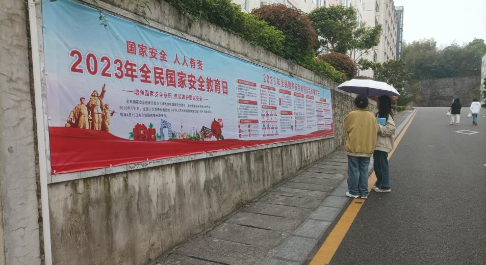 四、4月12日,制作了全民国家安全教育日宣传展板,在大数据楼前主干道路进行展出,更新了宿舍区宣传栏内容,供过往师生浏览。