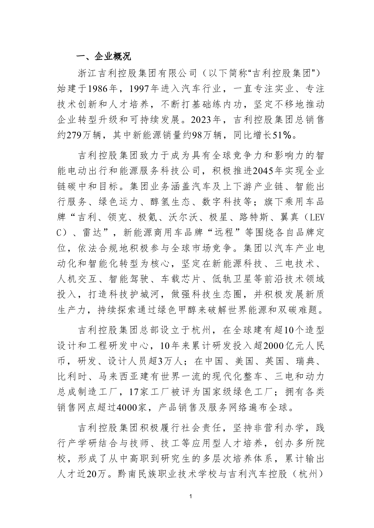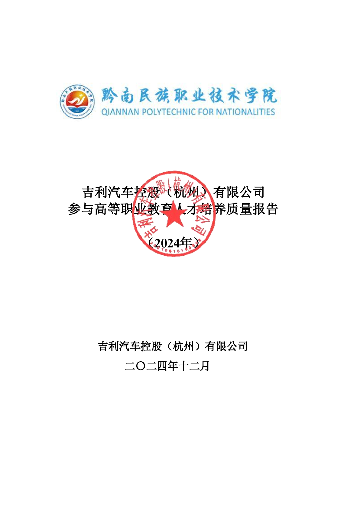吉利汽车控股(杭州)有限公司参与高等职业教育人才培养质量报告(2024年度)