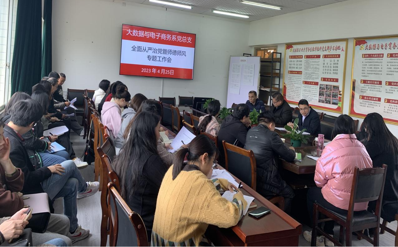 4月25日,大数据与电子商务系党总支在三楼会议室召开全面从严治党暨师德师风专题工作会。会议由大数据系党总支书记韦递平主持,大数据系全体教职工参加会议。