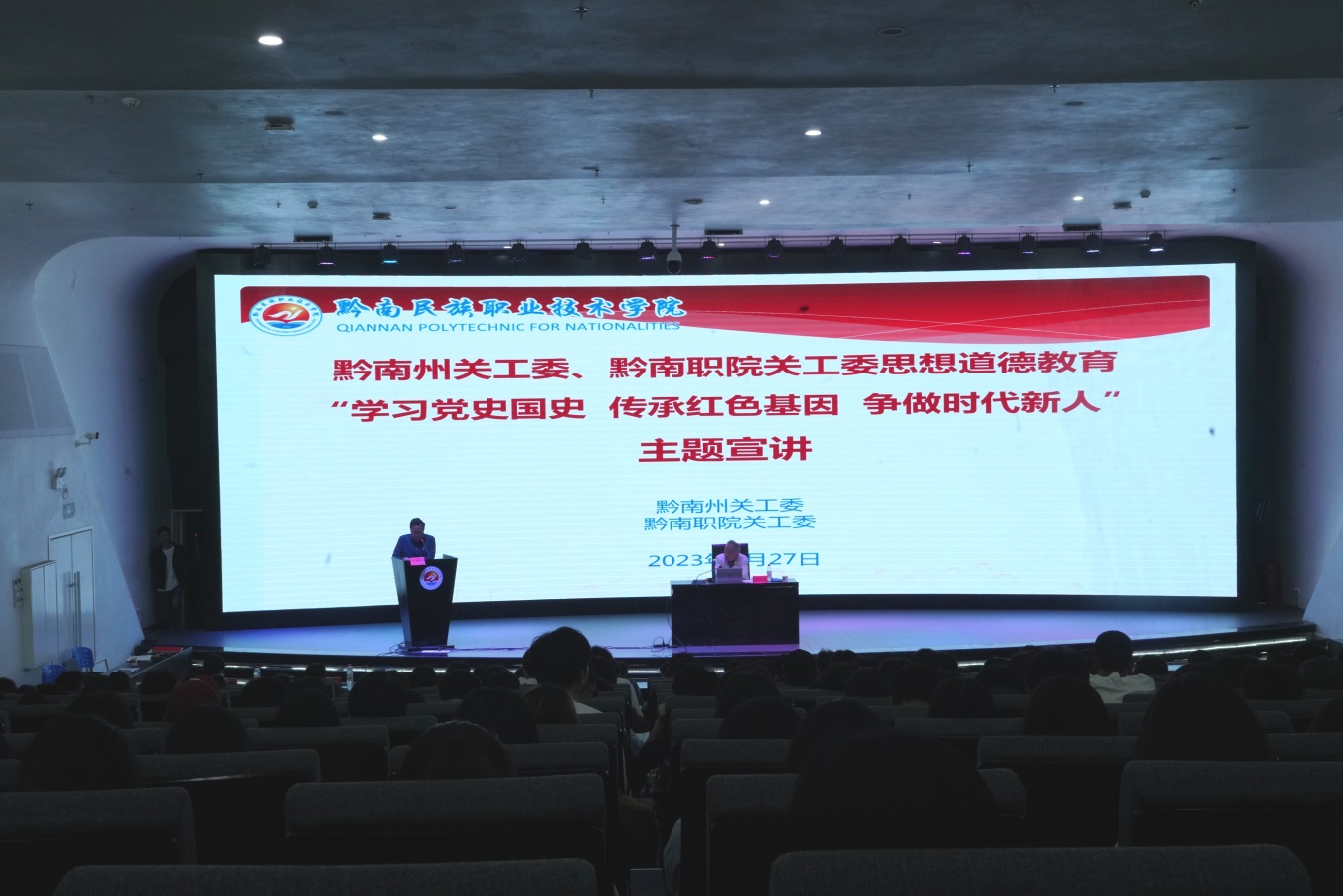 为深入学习贯彻党的二十大精神,推进习近平新时代中国特色社会主义思想“三进”,弘扬长征精神,4月27日下午,州关工委思想道德教育“学习党史国史 传承红色基因 争做时代新人”主题教育活动系列讲座第三期主题宣讲在学院学术报告厅举行。宣讲会由党建办负责人姜克安同志主持,州关工委常务主任李祝庆主讲。州关工委副主任丁匀、夏平出席指导。学院党委领导、师生代表400余人到场聆听讲座。