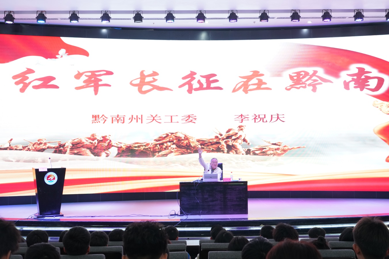 姜克安指出,李祝庆老师用生动朴实的语言讲述了红军长征在黔南的历史,带领大家重温那段烽火硝烟的峥嵘岁月,让我们真切感受红军不怕牺牲、勇于拼搏的革命精神。我们要深刻领悟长征精神,深刻领悟没有共产党就没有新中国的真正内涵。作为新时代的新青年,我们要坚定响应习近平总书记号召,继承和发扬好长征精神,坚定不移听党话、感党恩、跟党走,为建设“富强黔南、绿色黔南、幸福黔南、活力黔南、和谐黔南”贡献黔南职院学子的智慧和力量。