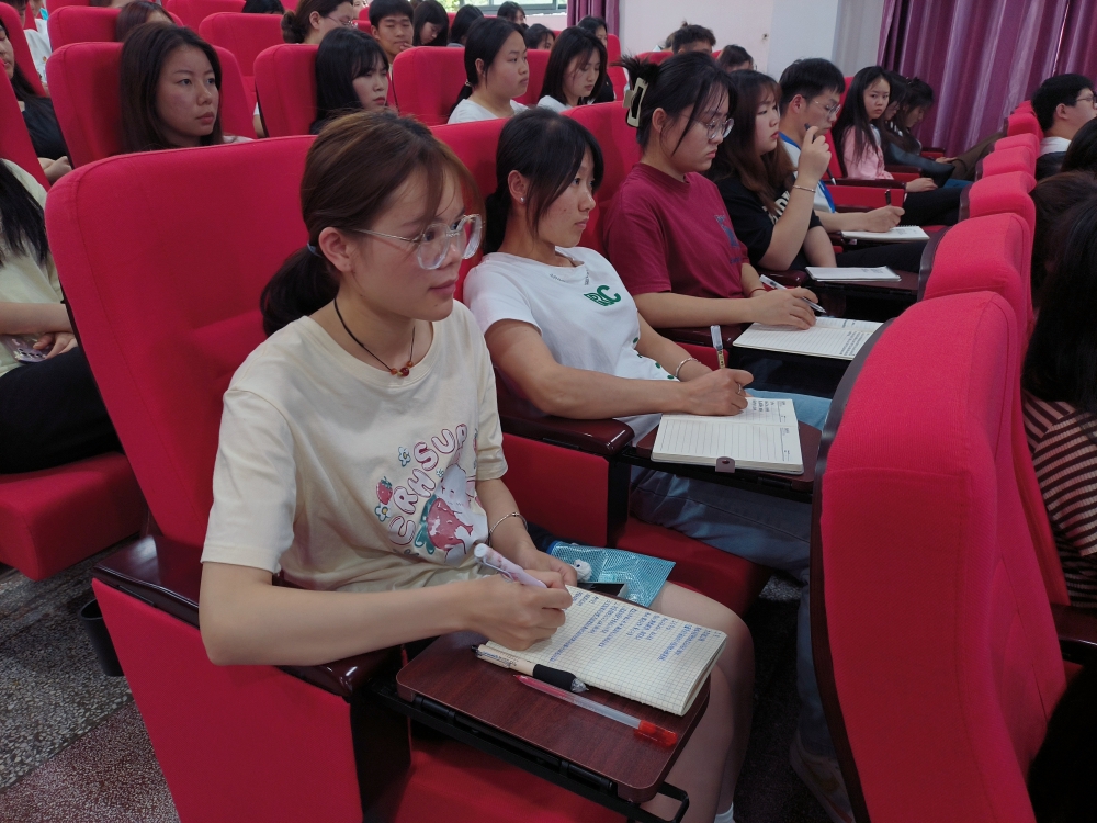 图2、图3:全场师生专心听讲,认真记录
