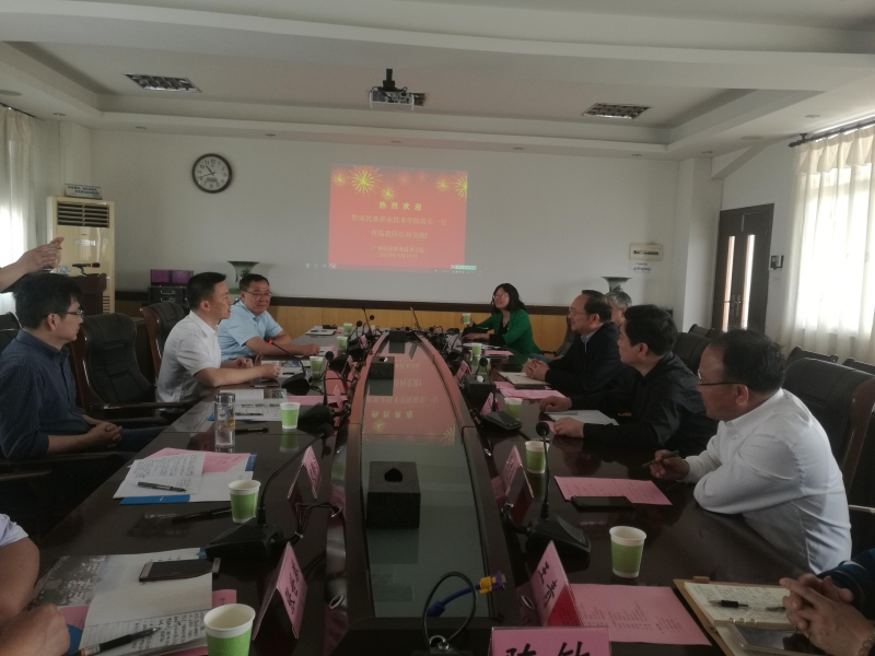 参观结束后考察组与广铁职院党委书记雷忠良、党委副书记马仁听、副院长李晓明、院办、教务处、后勤管理处、机电工程学院等部门负责人进行了校际合作交流洽谈。