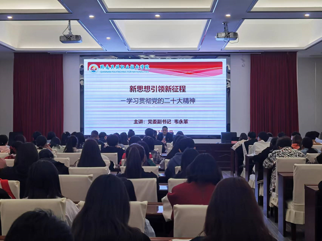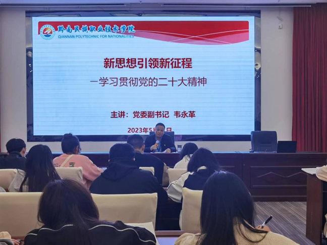 为深入学习贯彻党的二十大精神,引导入党积极分子把思想和行动统一到党的二十大精神上来。5月11日下午,在知行楼道德讲堂,学院党委副书记韦永革以“新思想引领新征程”为题为第37期入党积极分子宣讲党的二十大精神。