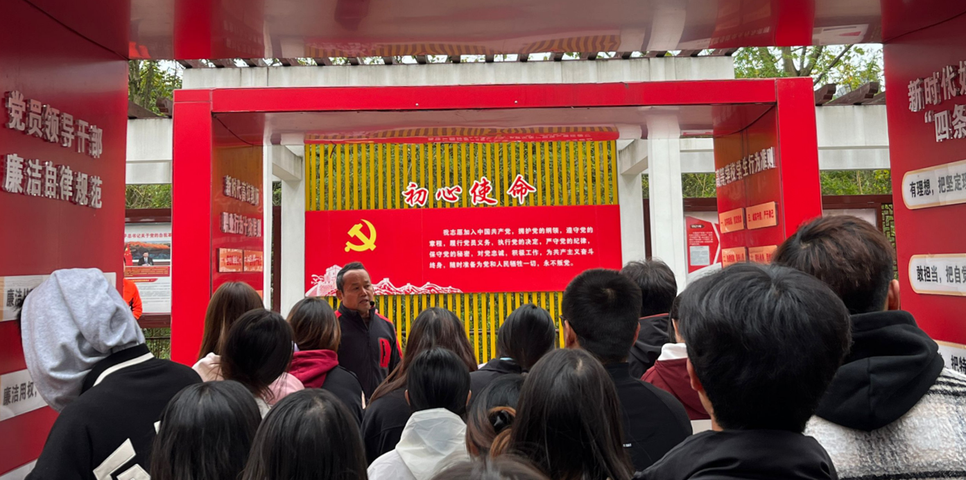 党建办陈洪升带领学员参观学校廉园并为大家介绍廉洁文化发展、新时代廉洁文化教育等内容。陈洪升强调,廉洁一直都是中华传统美德,一直都是共产党人的不懈追求,同学们要坚定廉洁自律的崇高理想信念,不触底线、不碰红线、不越雷池。